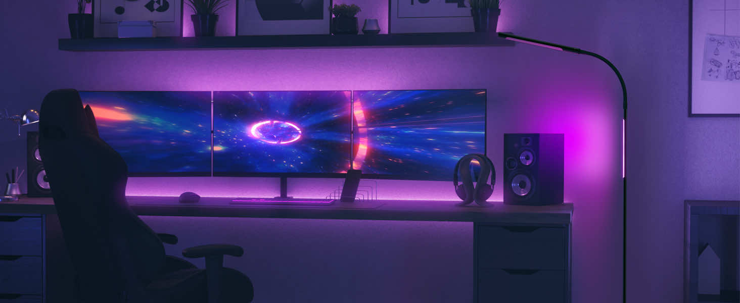 - Vier RGB-Modi: Die RGB-Stehlampe bietet vier RGB-Beleuchtungseffekte, um Ihren unterschiedlichen Anforderungen in verschiedenen Umgebungen gerecht zu werden. Die RGB-Beleuchtung mit einstellbarer Helligkeit kann auch Ihr Schlafzimmer, Spielzimmer, Büro und Wohnzimmer verschönern und bietet ein einzigartiges visuelles Erlebnis.