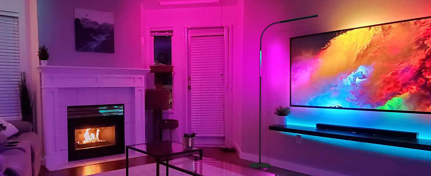 - Vier RGB-Aufnahmemodi: Im RGB-Aufnahmemodus erzeugt die Stehlampe wunderbare Beleuchtungseffekte, die mit dem Rhythmus der Musik synchronisiert sind, und verleihen Ihrem Raum Lebendigkeit und Spaß, um eine romantische und fröhliche Atmosphäre für ein besseres Erlebnis zu schaffen.